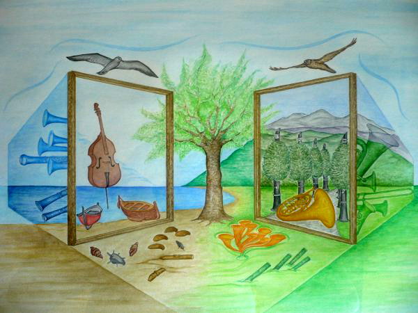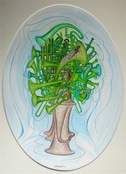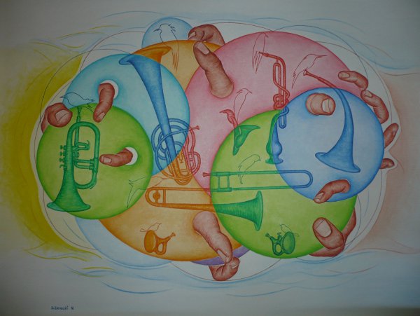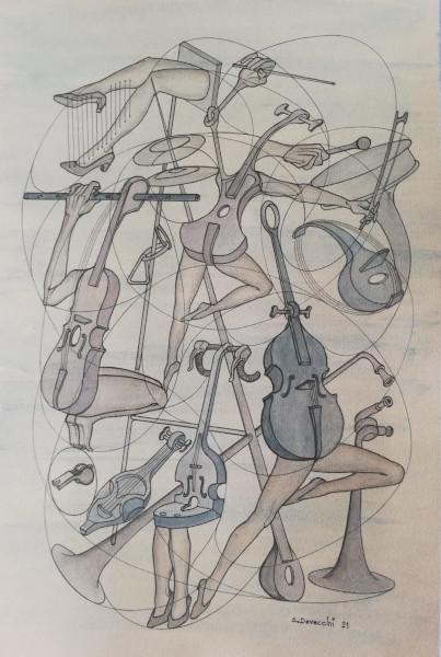 Danza rituale di strumenti a corda e altri da decifrare (Acquerello)