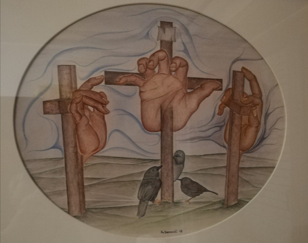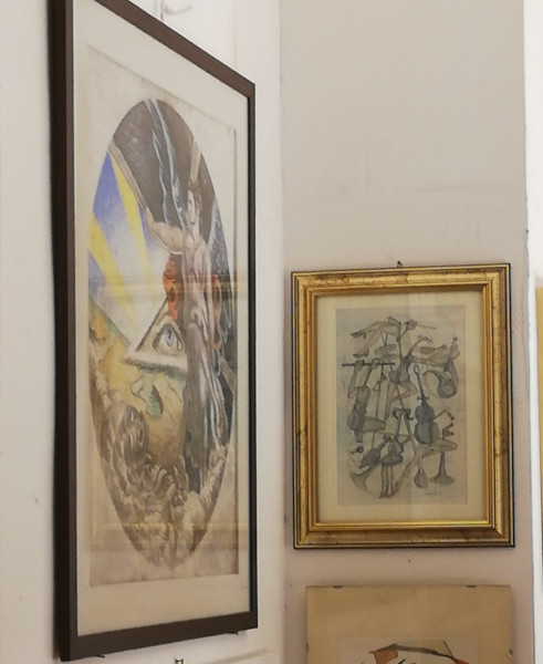 'Danza rituale di strumenti a corda e altri da decifrare'. Grafico donato alla Promotrice delle Belle Arti di Torino... attiguo ad una opera del Maestro Savinio